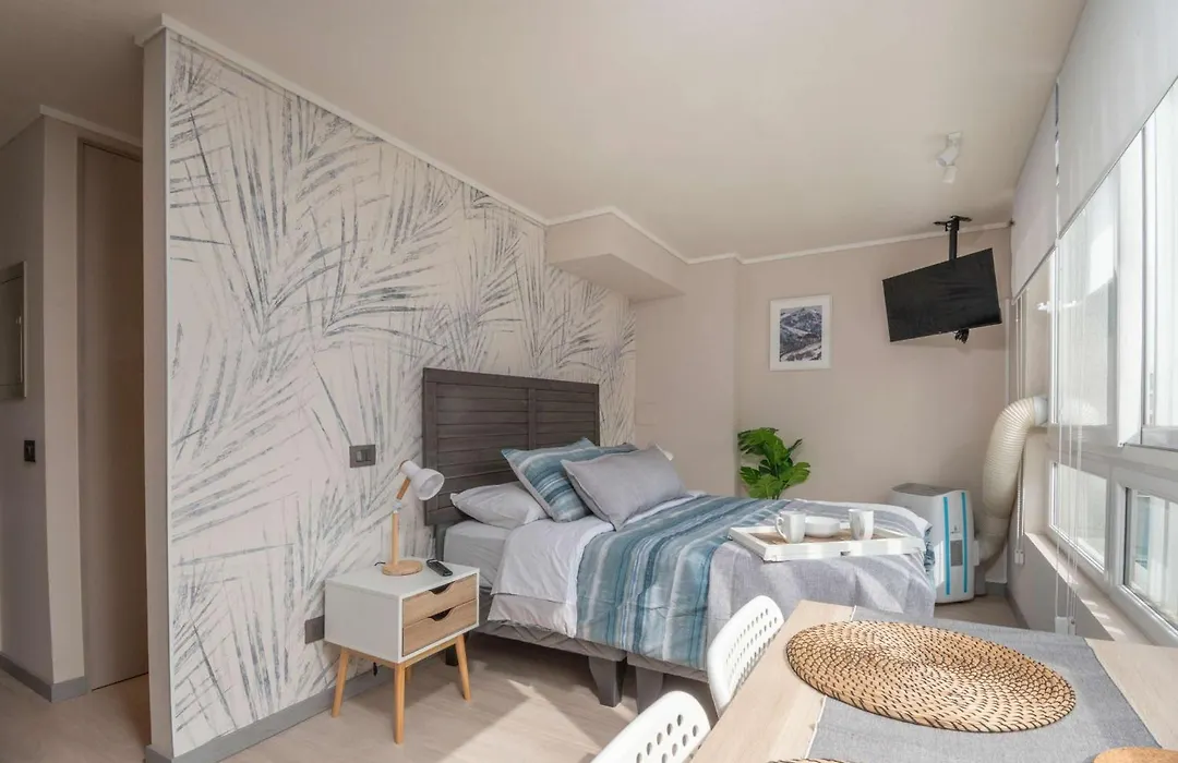 The 1-room Hom I Aireacond Piscina Gimnasio Metro Santa Lucia Apartment Santiago offers views of the city and a location approximately 25 minutes' walk from Fantasilandia Amusement Park. Guests can make use of high-speed Internet access for both business and leisure purposes.